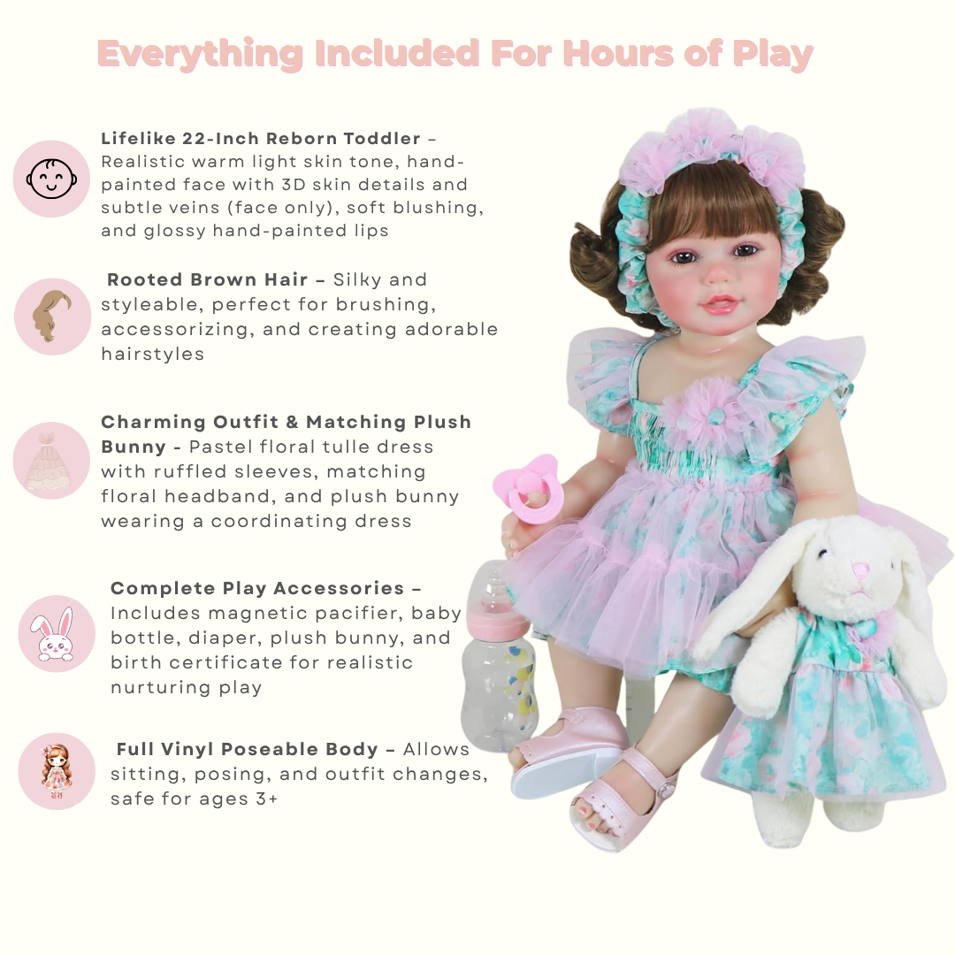 Bunny Blossom Baby Reborn Doll – 22-Inch Realistic Toddler Girl with Plush Bunny Companion