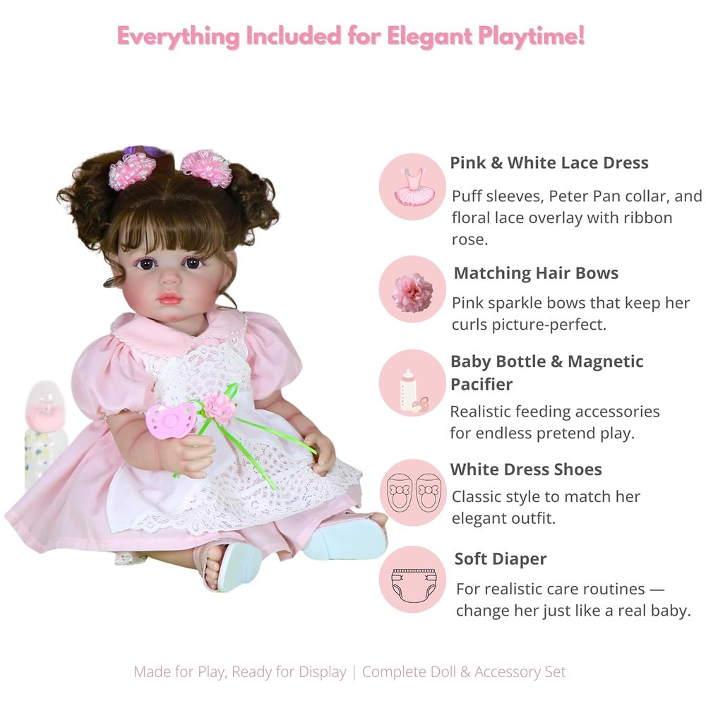 Clara Bloom – 22” Realistic Toddler Doll with Lace DressClara Bloom – 22” Realistic Toddler Doll with Lace Dress