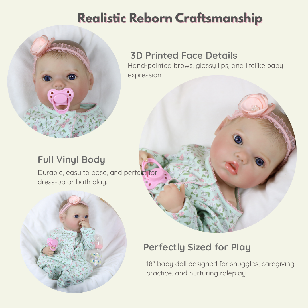 - 18-inch reborn baby girl doll with realistic 3D printed face