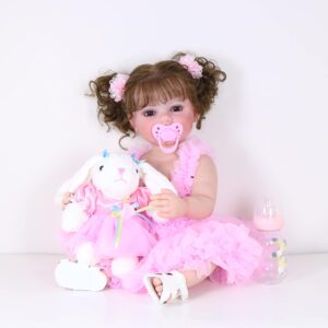 22 inch reborn toddler doll pink dress set with pacifier bunny and bottleHappy Dance – 22″ Toddler Doll with Full Vinyl Body