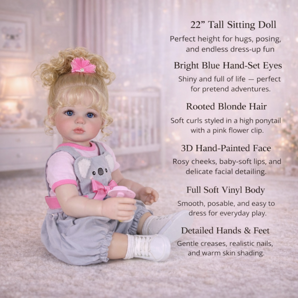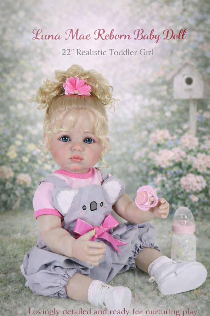 Bright-eyed, cuddly, and full of personality, Luna Mae captures the heart the moment you meet her. This 22-inch lifelike toddler girl doll from Cuddly Dolls is handcrafted to combine artistry, playfulness, and warmth — a companion that feels as real as she looks.