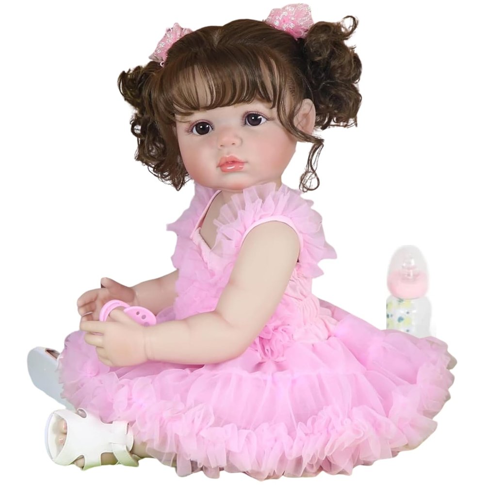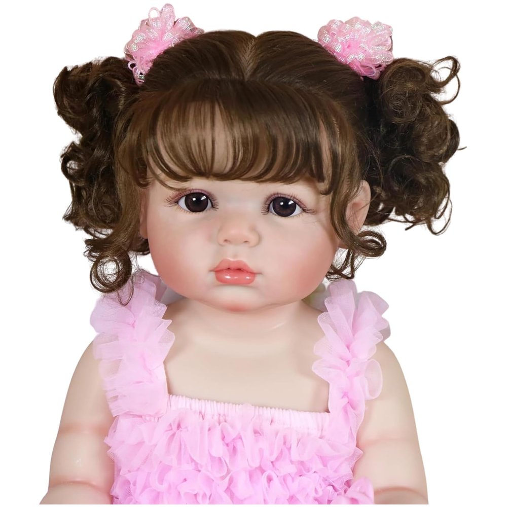 Madison is more than a doll — she’s a delightful friend who captures the gentle charm of early childhood. With soft brunette curls tied into pigtails, warm brown eyes that seem to follow your heart, and a shy little smile, Madison brings a sense of real companionship to every moment. Whether she’s joining a pretend tea party, sitting by the nursery window, or sharing bedtime snuggles, she turns playtime into precious memories.