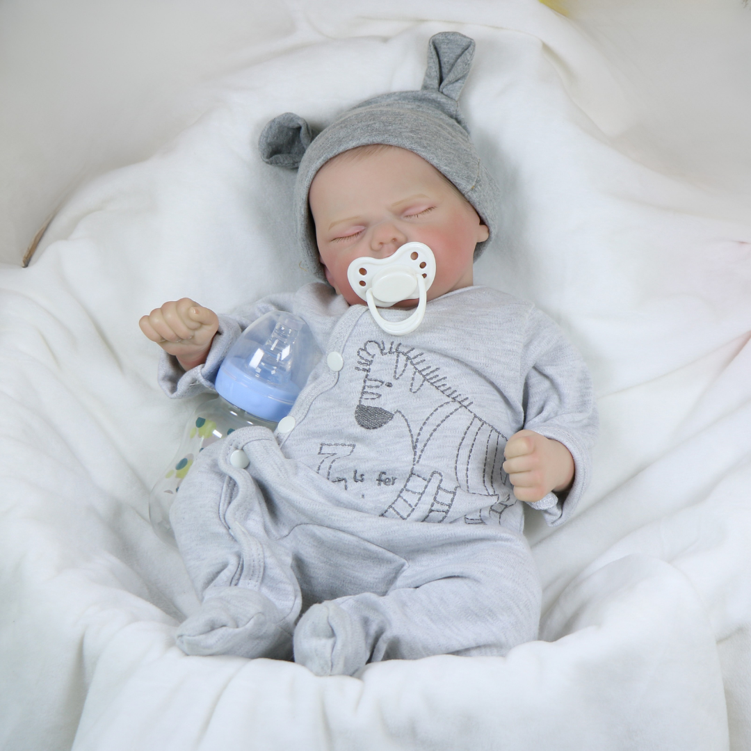 Introducing Noah Grey, a gentle and lifelike reborn baby boy doll crafted to bring comfort, creativity, and joy into every playtime moment. Measuring 17 inches, Noah captures the heartwarming innocence of a real newborn, from his softly blushed cheeks to his tiny, hand-painted lips that rest in peaceful slumber.