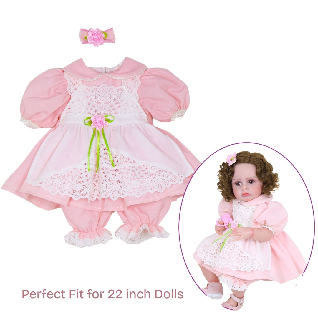 Transform your Reborn doll into a picture of vintage elegance with this Pink Vintage Lace Dress Set, designed for 20–22 inch dolls. Every detail evokes the warmth and nostalgia of classic storybook fashion, blending soft fabrics, delicate lace, and pastel hues into an outfit that sparks imagination and delight.